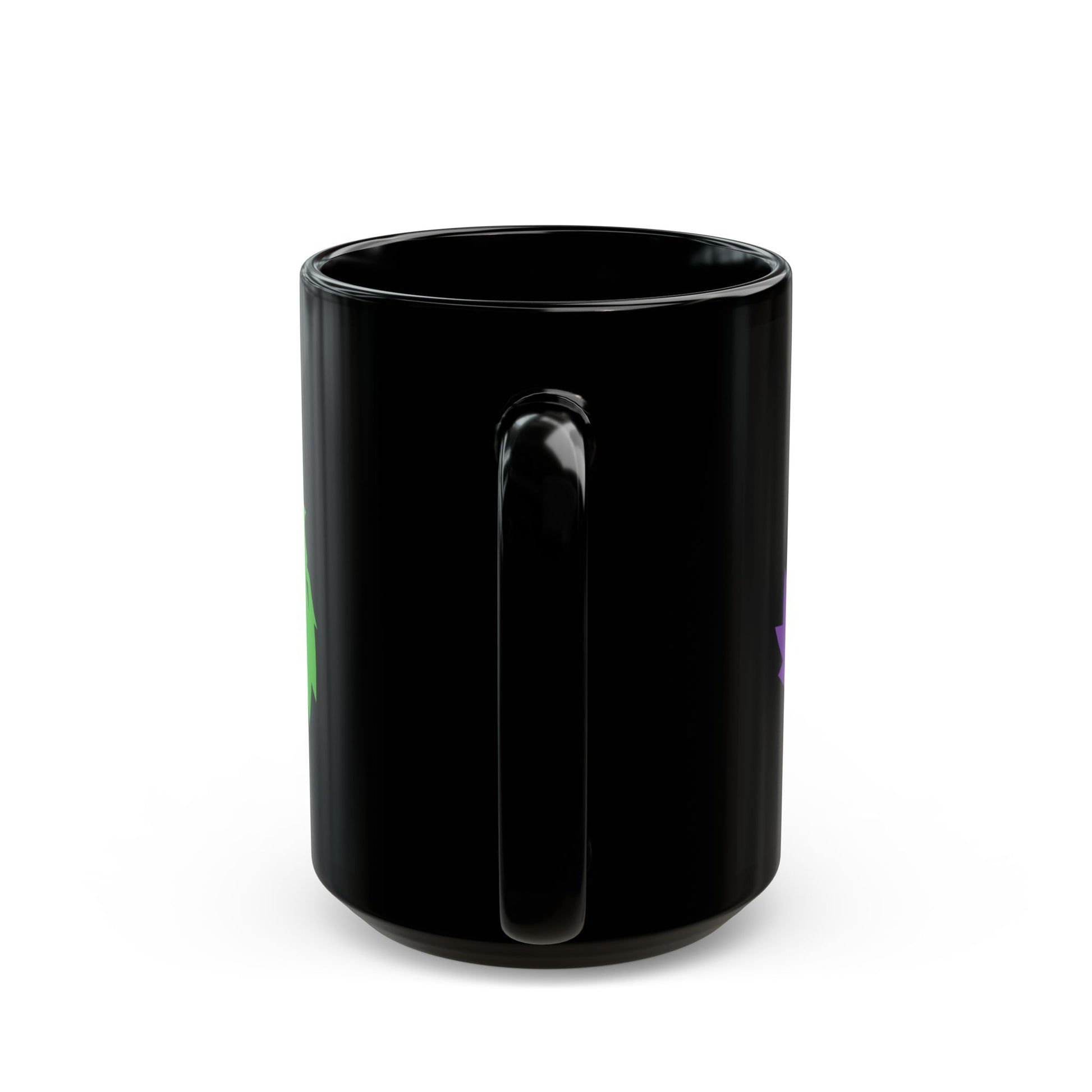 Morning light softens the edges, but this black ceramic mug holds bold color and mischief. Three stylized jack-o’-lantern faces — orange, green, and purple — circle the glossy surface like a little night-time parade. It’s the kind of mug that wakes you up with a grin: sturdy, weighty in the hand, and glossy enough to make the colors pop against the deep black background. Use it for slow coffee before heading out to carve pumpkins, or for a hot cocoa break while decking the mantel. The handle sits comfortably in your palm; the print keeps its vibrancy through microwave reheats and dishwasher cycles. For those who lean into autumn, spooky movie nights, or seasonal decor, this mug brings playful, slightly wicked charm to everyday sips.